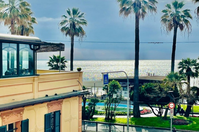 L'ALLOGGIO E' COMPOSTO DA UN AMPIO SOGGIORNO CON TRE FINESTRE E VISTA MARE LATERALE, CUCINA ABITABILE, GRANDE CAMERA DA LETTO, SALA DA BAGNO, RIPOSTIGLIO. TERMOAUTONOMO CLIMATIZZATO.